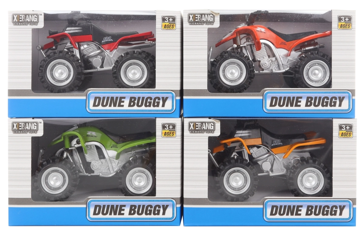 Tento model štvorkolky je ideálny pre malých milovníkov terénnych strojov. Kovové časti zvyšujú odolnosť, plastové doplnky dodávajú detail a ľahkosť. Hračka je navrhnutá tak, aby zvládla každodenné detské preteky a fantazijné dobrodružstvá.