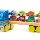 Drevený kamión s autami - skladačka 12 dielov