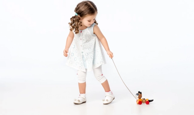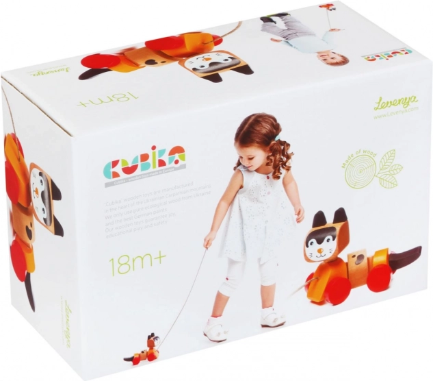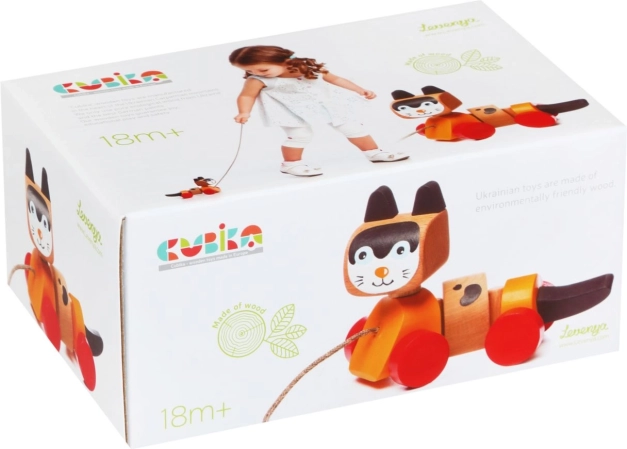 Drevená ťahacia hračka, navrhnutá v tvare veselého mačiatka, je ideálna pre zábavu a rozvoj motorických zručností detí. Hračka je vybavená pohyblivým telom a kolieskami, čo umožňuje plynulé a zábavné pohyby pri ťahaní za šnúrku. Farebný dizajn priláka pozornosť detí a povzbudí ich k aktívnej hre.