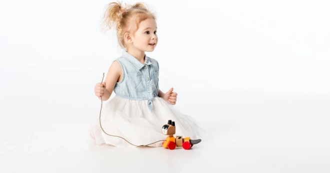 Vďaka pohyblivosti a možnosti ťahania podporuje hračka rozvoj jemnej motoriky.