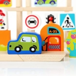 Dopravná stavebnica v meste zaujme deti vďaka svojej kombinácii farebných drevených kociek, ktoré môžu zložiť do podoby rušného mesta plného áut, semaforov a benzíniek. Vynikajúce pre rozvoj senzomotorických schopností, kreatívneho myslenia a logických zručností.