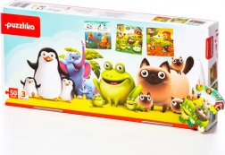 Puzzlika obľúbené zvieratká 3 v 1 – detské puzzle 3 obrázky, 50 dielikov
