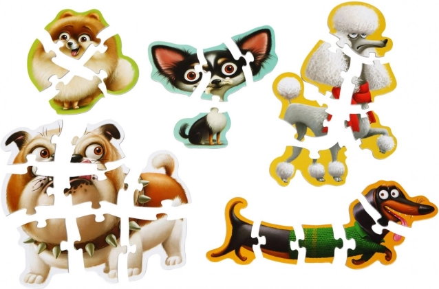 Táto sada detských puzzle Puzzlika prináša 5 roztomilých obrázkov psíkov, ktoré si deti poskladajú z rôzne náročných dielikov (4–8 na obrázok). Vďaka veľkým a pevným dielikom sa puzzle výborne držia v malých ručičkách a podporujú sústredenie aj trpezlivosť.