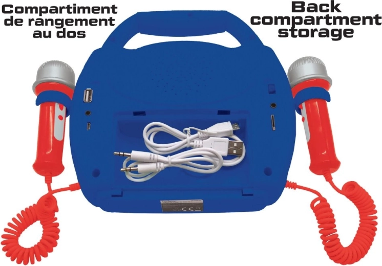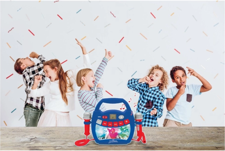 Prenosný karaoke prehrávač ľahko prepojíte s ďalšími zariadeniami pomocou funkcie Bluetooth a skvelá šou sa môže začať! Malí speváci určite ocenia úžasné efekty na zmenu hlasu a funkciu nahrávania seba samých pri speve. Prehrávač má zabudované dva mikrofóny na skvelé duety s kamarátom. K tomu svetelné efekty, ktoré blikajú v rytme hudby.