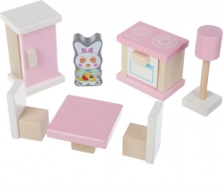 Vstúpte do sveta fantázie s Dreveným nábytkom pre bábiky Kuchynka, nádhernou 10dielnou sadou, ktorá vaše deti zavedie do sveta nekonečnej kreativity. Set obsahuje: