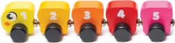 Desať dielikov očíslovaných 1–10 tvorí plynulú dúhovú škálu. Deti si upevňujú poradie čísel aj rozlišovanie farieb prirodzenou hrou.