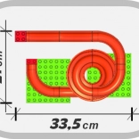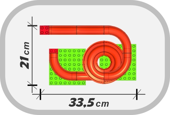 Dráha je vyrobená v Taliansku z kvalitných a odolných plastov a dodáva sa s prehľadným návodom. Zostavený model má rozmery približne 33,5 × 20,7 × 20,6 cm, čo sa hodí aj do menších detských izieb. Pri dokúpení všetkých troch dráh z tejto série možno vytvoriť mega trať s dĺžkou až 540 cm.