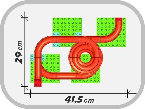 - Dĺžka trasy 160 cm, rozmery zostavenej dráhy: 41,5 × 28,7 × 24,4 cm
