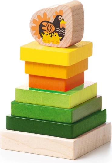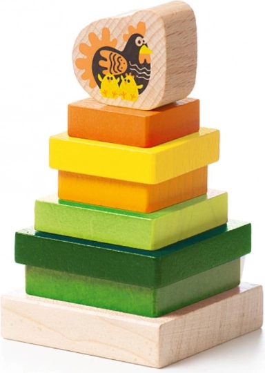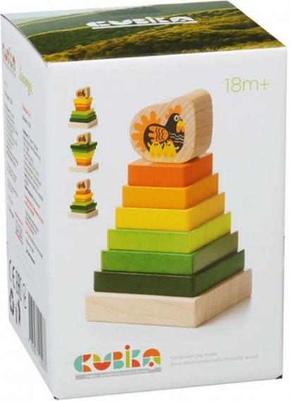Objavte kvalitnú drevenú skladačku pre najmenších – farebnú pyramídu so sliepočkou od CUBIKA. Hračka z ekologického javora a buka podporuje jemnú motoriku, logické myslenie a poznávanie farieb. Diely sa skladajú do tvaru pyramídy v plynulej farebnej postupnosti a rozvíjajú koordinačné zručnosti aj kreativitu. Bezpečné farby na vodnej báze, európska výroba a certifikácia TÜV podľa EN 71.