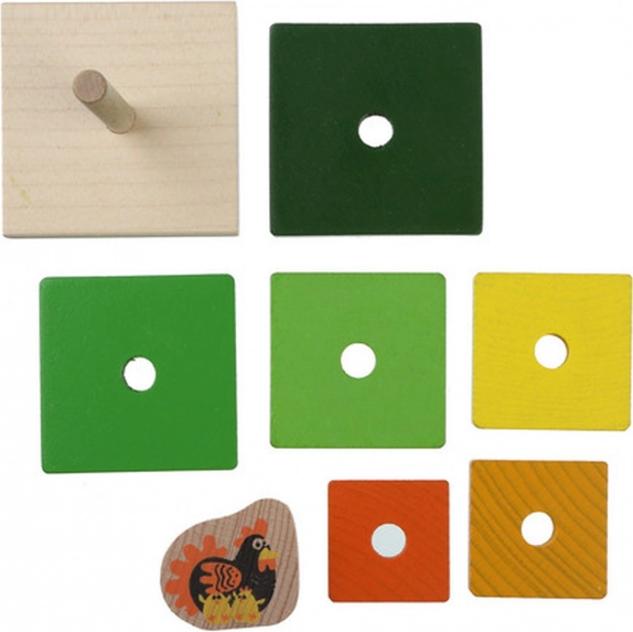 Drevená pyramída so sliepočkou je nadčasová vzdelávacia hračka, ktorá deti hravou formou zoznamuje s tvarmi, veľkosťami a odtieňmi. Osem pevne opracovaných dielov sa skladá na kolík do pravidelného tvaru pyramídy, pričom si deti precvičia triedenie podľa veľkosti aj farieb a zlepšia koordináciu oko–ruka.