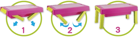 Jednoducho rozložiteľný stolík slúži počas hry ako stabilná plocha a po skončení sa premení na praktický box, do ktorého schováte všetky diely.