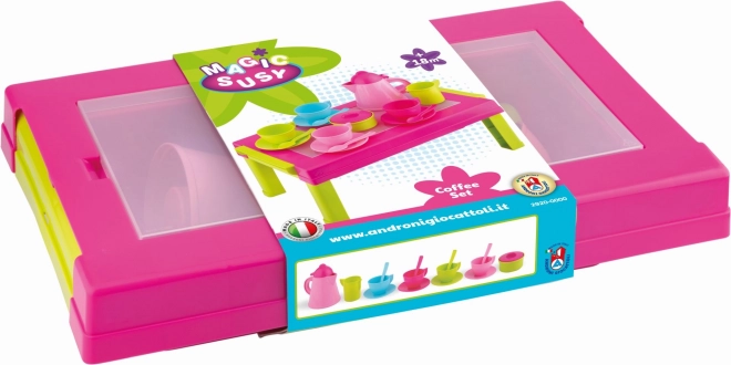 Kávová súprava ANDRONI poteší každého malého baristu. Sada obsahuje všetko pre detské čajové a kávové posedenia a vďaka šikovnému stolíku, ktorý slúži aj ako praktický úložný box, máte všetky diely vždy pekne po ruke. Farebné prevedenie láka ku hre a podporuje spoločenskú interakciu aj rozvoj jemnej motoriky.