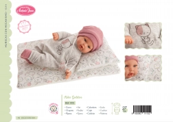 Značka ANTONIO JUAN kladie dôraz na udržateľnosť – vybrané oblečky sú šité z organickej bavlny, pestovanej bez chemického ošetrenia. Bábika má kompaktnú veľkosť 27 cm, takže sa ľahko drží aj menšími detskými rúčkami. Je balená v dárčekovej krabici, a preto je skvelým darčekom k narodeninám či Vianociam.