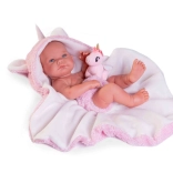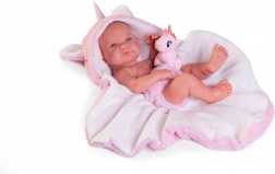 Ručne vyrobená španielska bábika – bábätko s celovinylovým telom a realistickými detailmi vrátane anatomicky správneho zobrazenia. Z mäkčeného vinylu, príjemného na dotyk, vhodná na kúpanie. Veľkosť 42 cm, dárkové balenie, vek 3+.