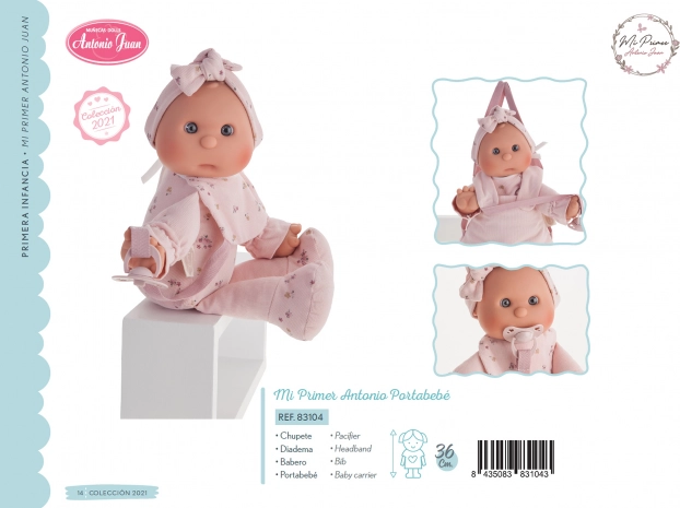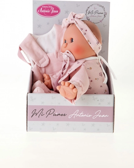 Roztomilá bábika značky Antonio Juan je ideálna ako prvá bábika pre batoľatá. Má mäkké látkové telíčko, realistickú hlavičku a končatiny z mäkčeného vinylu a súčasťou je magnetický cumlík. Vybrané oblečky sú z organickej bavlny, všetko je balené v darčekovej krabici. Veľkosť 36 cm, odporúčané od 18 mesiacov.