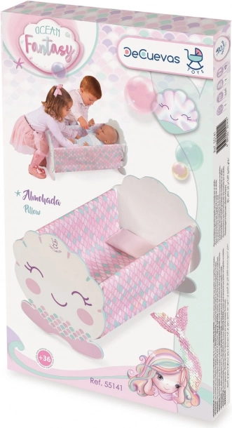 Roztomilá drevená kolíska pre bábiky z kolekcie OCEAN FANTASY očarí jemnými pastelovými farbami a motívom malej morskej víly. Ponúka kvalitné spracovanie, stabilnú konštrukciu a španielsky dizajn. Súčasťou je ružový vankúšik, ktorý doplní pohodlie bábiky. Ideálny doplnok do dievčenskej izby na kreatívne hranie a starostlivosť o bábiky.