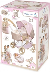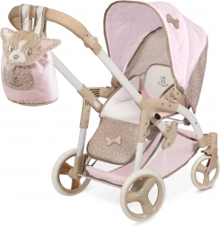 Štýlový detský kočík pre bábiky 3 v 1 z nežnej kolekcie s motívom šteniatka DIDI nadchne každú malú mamičku. Ponúka polohovateľné lôžko a športové sedenie, prenosnú tašku s roztomilou výšivkou, výškovo nastaviteľnú rukoväť až do 80 cm a otočné predné kolieska pre jednoduché ovládanie. Praktický veľký košík, trojbodový pás a kvalitné španielske spracovanie z kovu, plastu a textilu zaručujú bezpečnú a zábavnú hru.