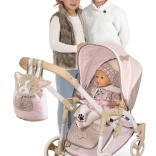 Skladací kočík pre bábiky 3 v 1 (korbička/športové sedenie/prenosná taška)
