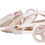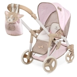 Okúzľujúci kočík pre bábiky v ružovo‑béžových tónoch prináša skvelú kombináciu dizajnu a funkčnosti. Vďaka polohovateľnému korbičkovému lôžku, ktoré ľahko premeníte na športové sedadlo, si deti užijú realistickejšiu hru. Súčasťou je aj prenosná taška pre bábiku s hebkou zamatovou výšivkou DIDI a praktickým štítkom proti ofúknutiu.