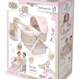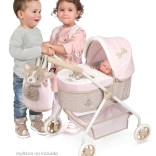Súčasťou je praktický batôžtek v rovnakom dizajne, kryt vaničky s očkami na bezpečné uchytenie a priestranný košík na doplnky. Kočík je prispôsobený pre menšie deti – má výšku k rukoväti 56 cm a vaničku s rozmermi 40 × 23 cm, aby si každá bábika pohodlne „pospala“.