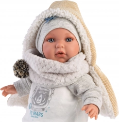 Bábika Enzo sa môže pochváliť módnym oblečením, vrátane čiapky, šálu a teplákov. Detaily ako pompony a vzor astronóma dodávajú čaru.