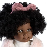 Kučeravé čierne vlásky s mašľou, jemné rysy tváre a pohyblivé končatiny podporujú kreatívne rozprávanie príbehov.