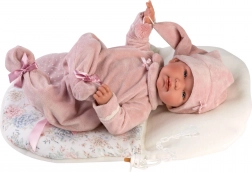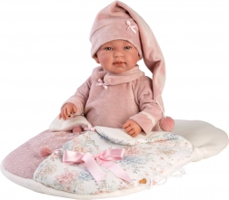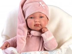 Mluvící realistická bábika miminko od značky Llorens s mäkkým látkovým telom. Po zatlačení na hrudník začne bábika hovoriť „mama“, „papa“ a vydávať realistický zvuk plačúceho bábätka. Ruky a nohy sú k telu prichystané kĺbom, čo umožňuje polohovanie a sedenie bábiky.