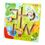 Posúvanie zvieratiek po drážkach trénuje úchop, koordináciu oko–ruka a presnosť pohybov, ideálne pre predškolákov.