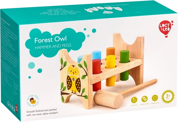 Táto kvalitná drevená zatĺkačka s motívom lesnej sovy je ideálnou hračkou pre deti, ktoré milujú aktívnu a zmysluplnú zábavu. Šesť farebných kolíkov a drevené kladivko pomáhajú deťom trénovať presnosť úderu, silu a rytmus.