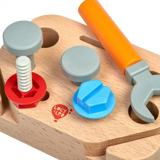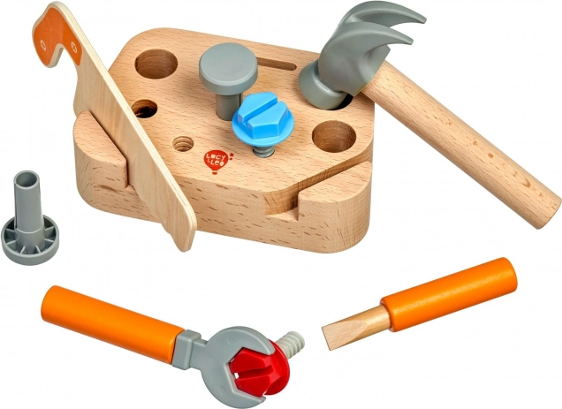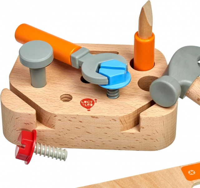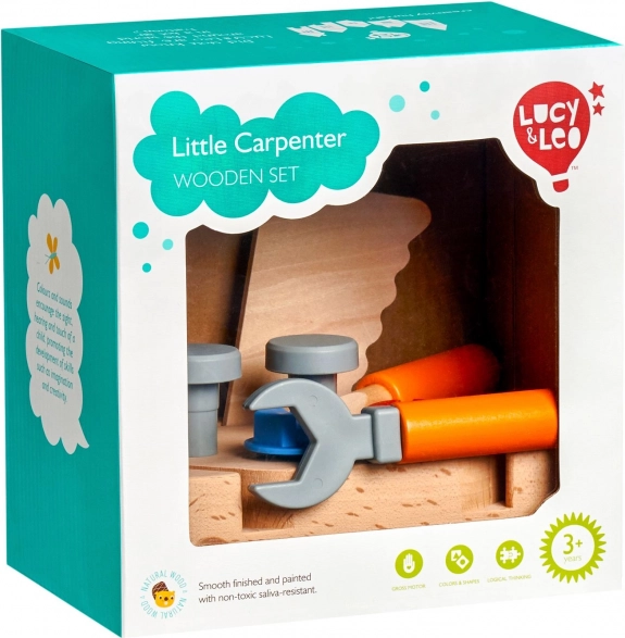 Drevená sada náradia „Malý tesár“ od značky Lucy & Leo je ideálna pre malých kutilov od 3 rokov. Vďaka prehľadnému stojanu (11 × 16,5 × 4,5 cm) majú deti všetky nástroje vždy po ruke. Kvalitná kombinácia dreva a odolného plastu zaručuje bezpečné a dlhodobé používanie.