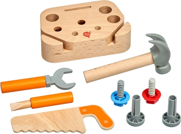 Objavte kreatívny svet remesiel s detskou sadou náradia Lucy & Leo „Malý tesár“. Táto kvalitná drevená sada s 9 dielmi obsahuje stojan a základné nástroje – pílku, kladivo, kľúč a skrutkovač – doplnené o skrutky a klince. Hračka je z bezpečného dreva a plastu s hladkou povrchovou úpravou a skvele rozvíja jemnú motoriku, koordináciu oko–ruka aj kreatívne myslenie.