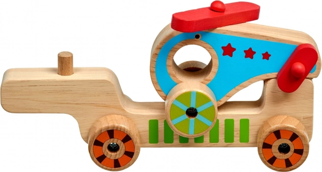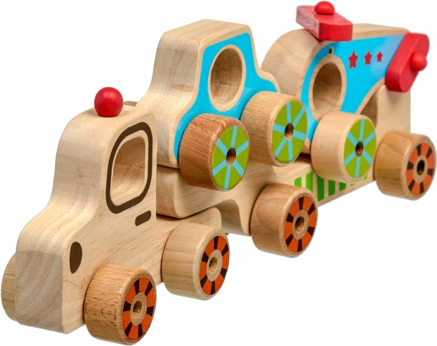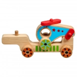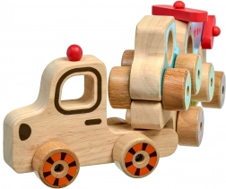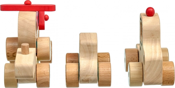 Táto drevená skladačka pre najmenších spája zábavu s učením. Deti môžu samostatne jazdiť s kamiónom, autíčkom aj vrtuľníkom a potom ich všetky naložiť na korbu a vyraziť „na cestu“. Farebné akcenty a jednoduché tvary pomáhajú rozvíjať zrakové vnímanie, zatiaľ čo manipulácia s dielmi trénuje úchop a obratnosť.