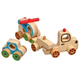 Kamión, autíčko a vrtuľník možno používať samostatne alebo ich zložiť do jednej súpravy. Deti trénujú predstavivosť aj logiku pri nakladaní a prepravovaní.