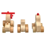 Kombinácia prírodného dreva a farebných detailov láka ku hre a zároveň pomáha s rozlišovaním tvarov a častí. Hladké hrany sú šetrné k malým rúčkam.