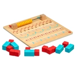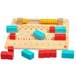 Sada je vyrobená z kvalitného dreva s hladkým povrchom na bezpečné používanie. Červené kocky a modré kvádre vizuálne znázorňujú hodnoty, vďaka čomu si deti ľahko osvoja pojmy viac/menej, sčítanie a odčítanie. Ideálne na domáce učenie aj do materských škôl.