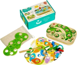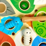 Bezpečná magnetická palička pomáha deťom chytať farebné húsenice do otvorov. Rozvíja jemnú motoriku, koordináciu a trpezlivosť.
