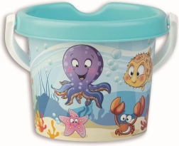 Praktické a rozkošné vedierko na piesok v tvare šťastnej rybky, vyrobené z kvalitného talianskeho plastu – ideálne pre malých dobrodruhov.