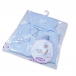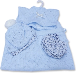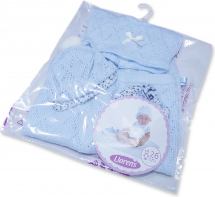 Oblečenie pre bábiku bábätko vo veľkosti 26 cm zahŕňa svetrík, čiapočku a nohavičky. Je navrhnuté tak, aby prinieslo maximálne pohodlie a eleganciu do hry s bábikou. Balenie tiež obsahuje jemne pletenú deku, ktorá doplní celkový vzhľad. Tento set je zabalený v transparentnom obale s plastovým alebo kartónovým ramienkom.