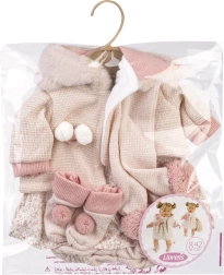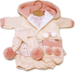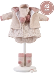 Štýlová 5-dielna súprava pre bábiku veľkosti 42 cm prináša všetko pre dokonalé prezliekanie. Nájdete v nej mäkučký pletený svetrík s kapucňou, kvetinový overal/šatočky, ponožky a rukavičky aj huňatý šál s brmbolcami a gumičky do vláskov. Kvalitné spracovanie, vyrobené v Španielsku, ideálne pre kreatívnu hru a rozvoj jemnej motoriky.