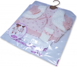 Doprajte svojej bábike nový šatník: ružové šatočky s decentným vzorom dopĺňa hebká biela vestička a pohodlné nohavičky. Sada je určená pre bábiky veľkosti 42 cm a zaujme zladenými detailmi aj ľahkým obliekaním.