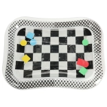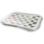 Podložka má čiernobiely šachovnicový vzor, ktorý prirodzene upúta detskú pozornosť a pomáha stimulovať zrakové vnímanie.