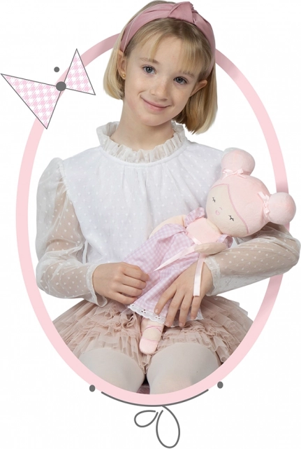 Plyšová bábika Niza je súčasťou jemnej ružovej kolekcie inšpirovanej baletom. Vďaka mäkkej, hladkej a lesklej plyši sa skvele hodí pre deti už od 12 mesiacov. Praktická darčeková krabička s priehľadným vekom sa ľahko premení na pohodlnú kolísku, takže máte všetko pripravené na okamžitú hru.