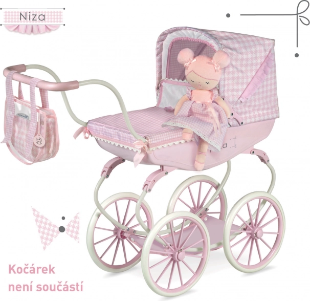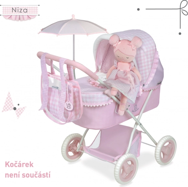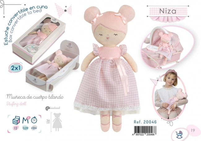 Roztomilá plyšová bábika Niza v jemnom ružovom prevedení poteší každú malú balerínu. Je ľahučká, hebká na dotyk a ideálna na maznanie aj na cesty. Súčasťou je šikovná krabička 2 v 1 premeniteľná na kolísku, takže sa dieťa môže ihneď hrať. Bábika je prateľná pri 30 °C a vyniká kvalitným spracovaním a jemným španielskym dizajnom.