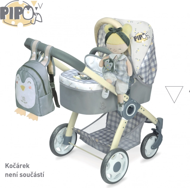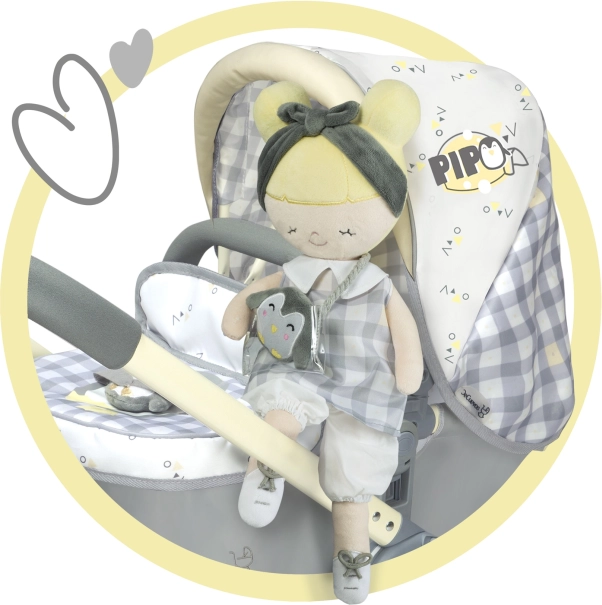 Bábika Pipo je súčasťou úžasnej kolekcie z roku 2022, ktorú si zamilujete. Táto kolekcia zahŕňa kočíky, nábytok pre bábiky a ďalšie doplnky pre malé gazdinky. Charakteristický dizajn so šedobielou kockou a jemne žltými doplnkami s motívom tučniaka splní očakávania každej malej princezny.