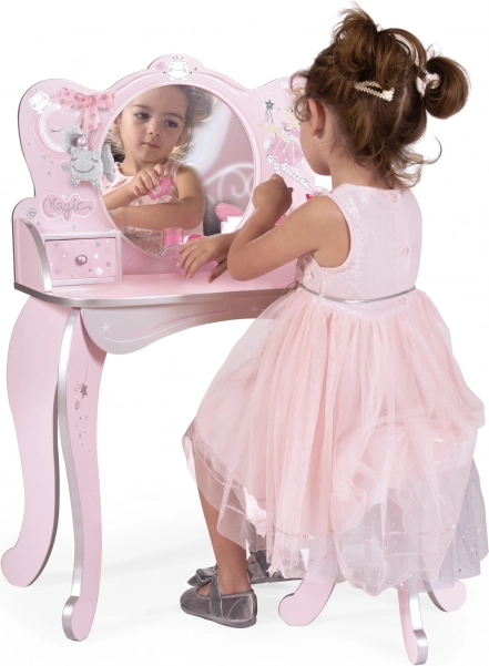 Ponúka dva šuplíky na uloženie doplnkov a zrkadlo, čo uľahčuje hru na obliekanie.
