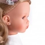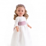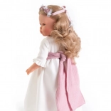 Jemné biele šaty s mašľou a kvetinovou čelenkou zvyšujú kúzlo bábiky. Vybrané kolekcie využívajú organickú bavlnu pestovanú bez chemického ošetrenia.