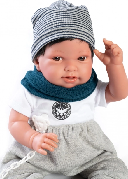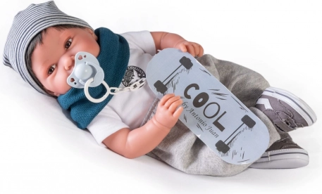 Realistická bábika bábätko Antonio Juan Pipo Hair nadchne jemným výrazom, detailne prepracovanými črtami a možnosťou prirodzeného polohovania vďaka kĺbom na rukách a nohách. Kombinácia mäkkého látkového telíčka a mäkčeného vinylu na hlave a končatinách zaručuje veľmi príjemný dotyk a autentický vzhľad.