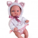 Hebučké biele oblečenie s ružovými detailmi, uškami a rohom podporuje fantáziu a robí z bábiky čarovného parťáka na každodenné hranie.