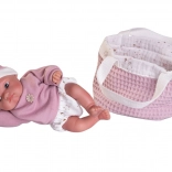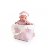 Súčasťou balenia je štýlový textilný košík/taška na jednoduché nosenie a ukladanie bábiky. Značka Antonio Juan kladie dôraz na udržateľnosť – pri vybraných modeloch používa organickú bavlnu bez chemického ošetrenia. Bábika je prezentovaná v elegantnej darčekovej krabici, takže poteší pri každej príležitosti.