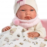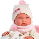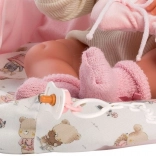 Bábika prichádza s roztomilým oblečením a doplnkami, vrátane čiapky a cumlíka, ktoré zvyšujú jej realistickosť.